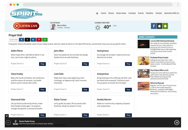Elevate your station’s website into a nurturing community hub with our “Prayer Wall” feature. This unique tool allows visitors to share prayer requests, fostering a bond of support and compassion within your audience. As others visit and click “Pray” on these requests, it creates a virtual circle of care and encouragement.