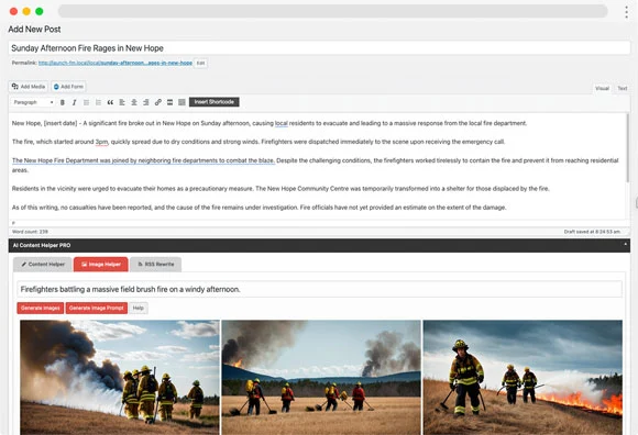 AI Content Helper Pro is a game-changer for radio station websites. This cutting-edge upgrade to our free AI extension simplifies your team’s content creation to quickly generate engaging news, blog articles, and captivating images with just a few prompts – all without leaving the editing space.